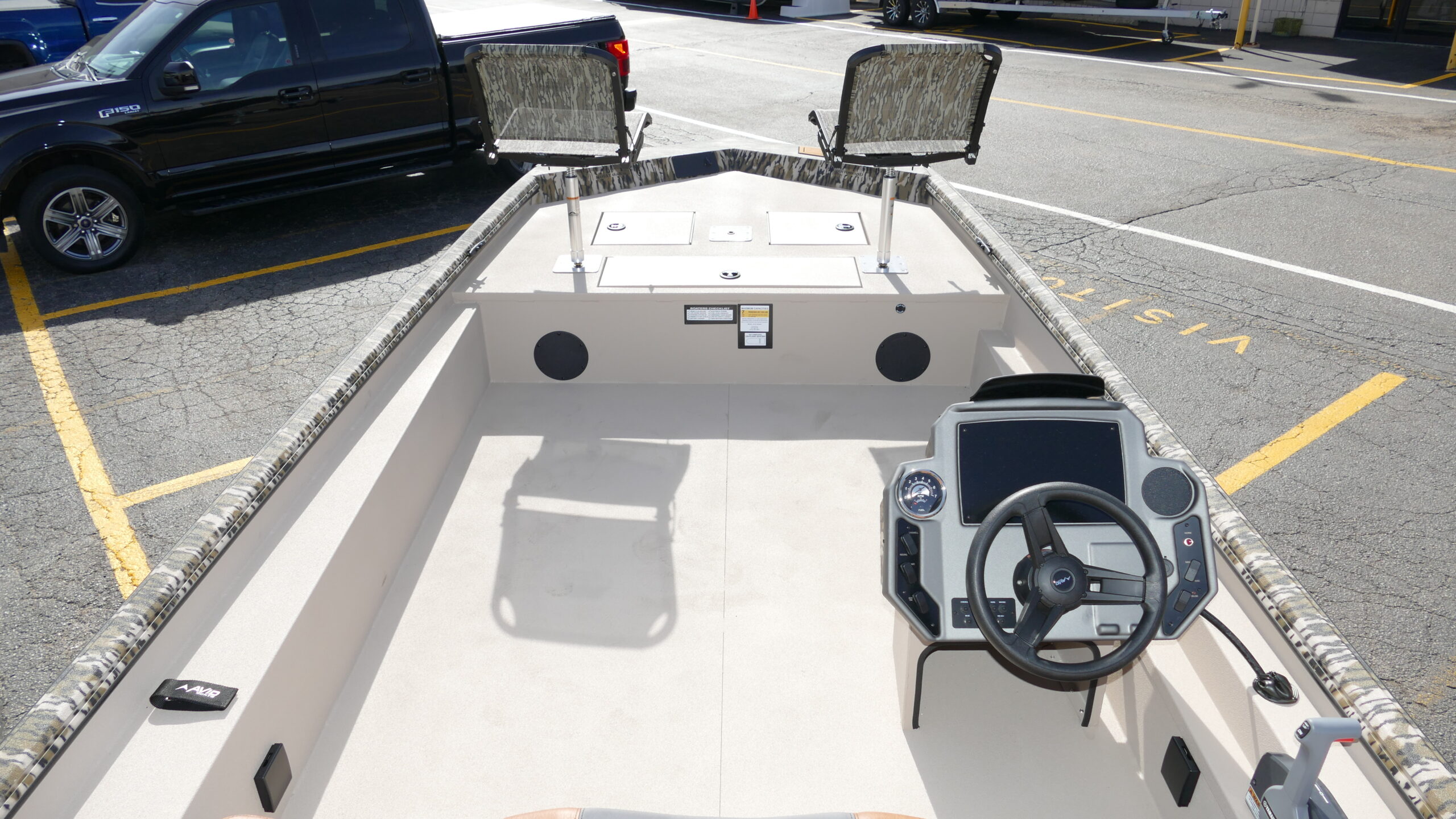 Mossy Oak Gamekeeper Package Hull And Console, Twill Interior Color, Three Across Front Deck Seat Bases, 2 Millennium Fishing Seats With Pedestals, 1-24 Series Battery, Fire Extinguisher, Aluminum Propeller, Single Axle Trailer With Swing Tongue And Transom Tie Downs.