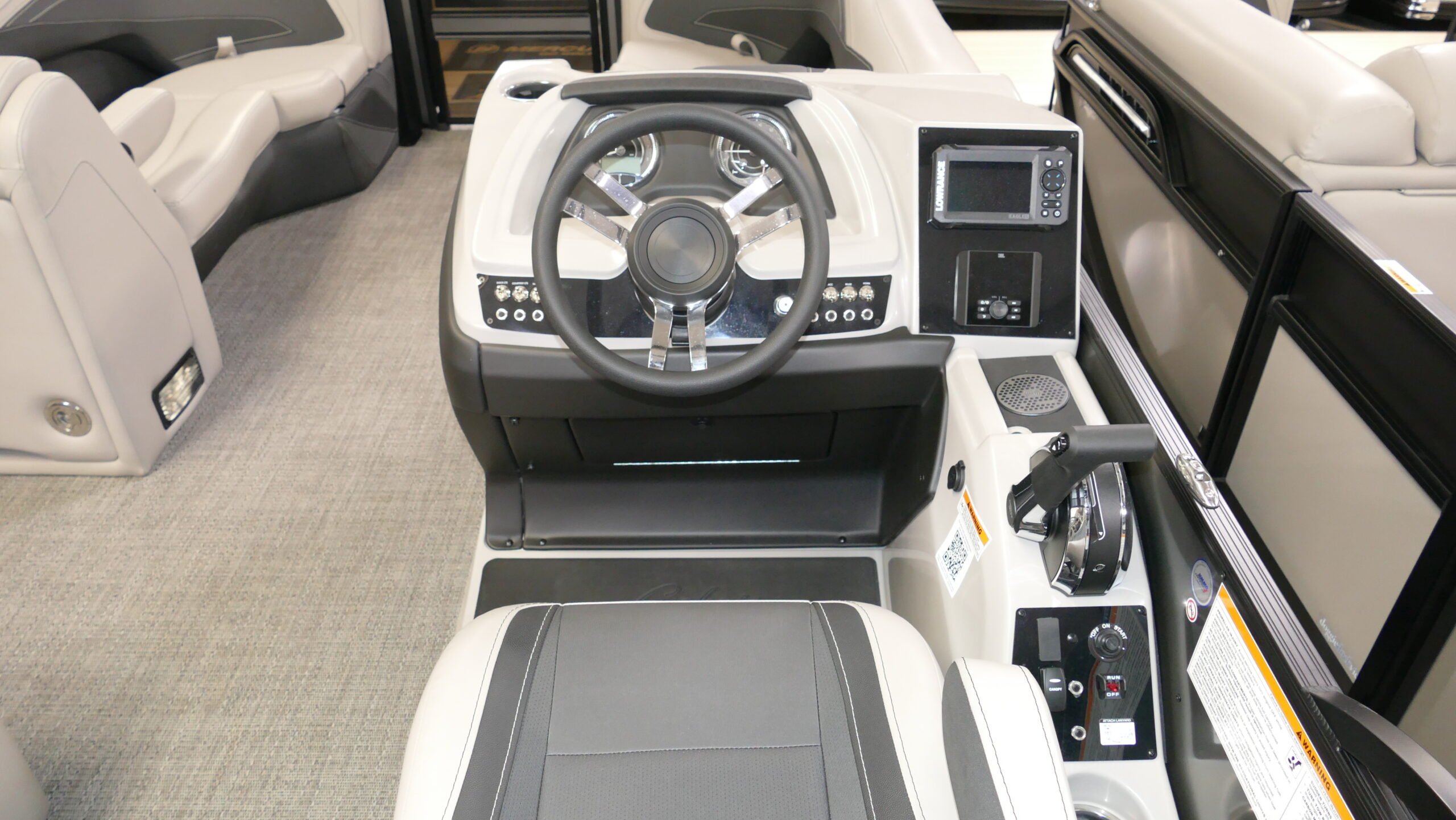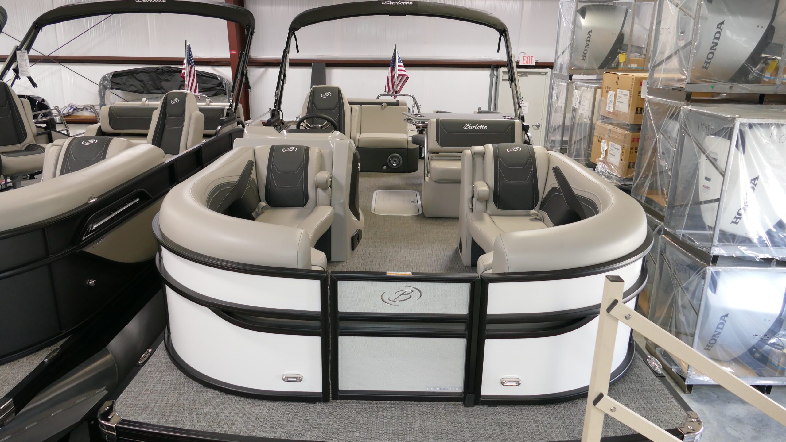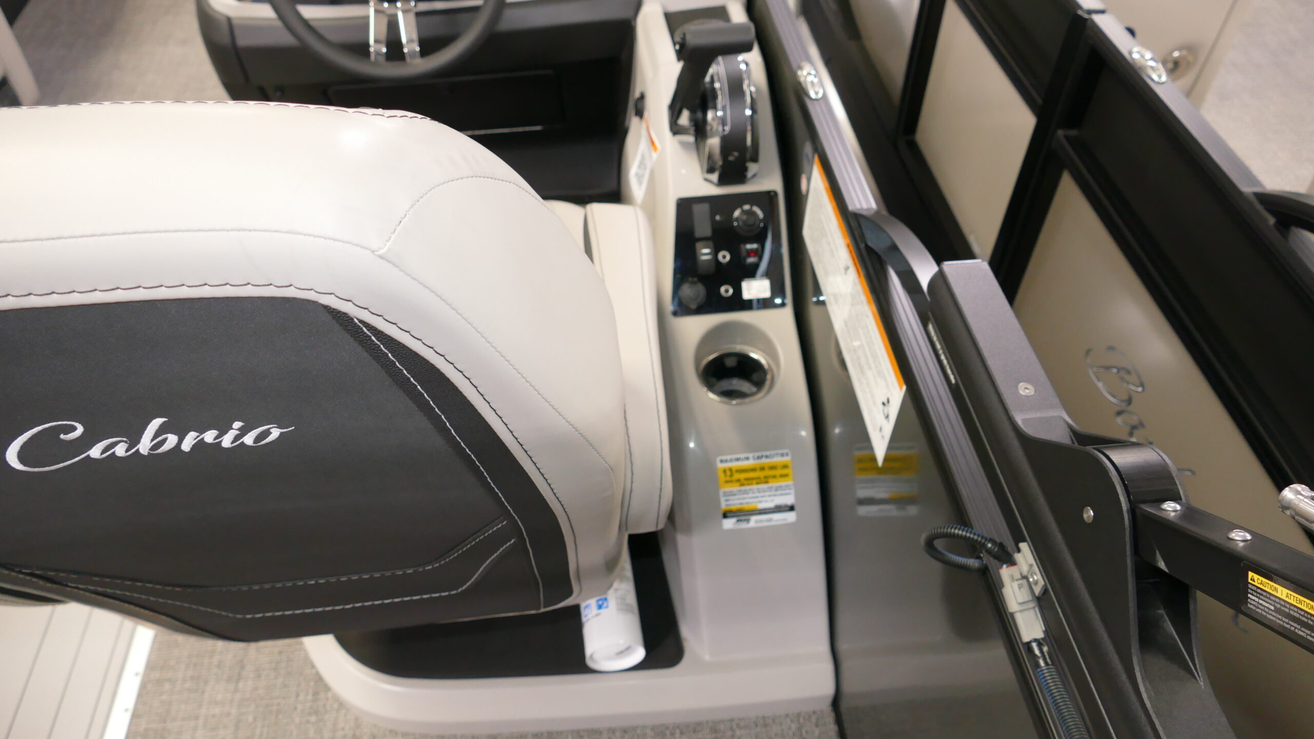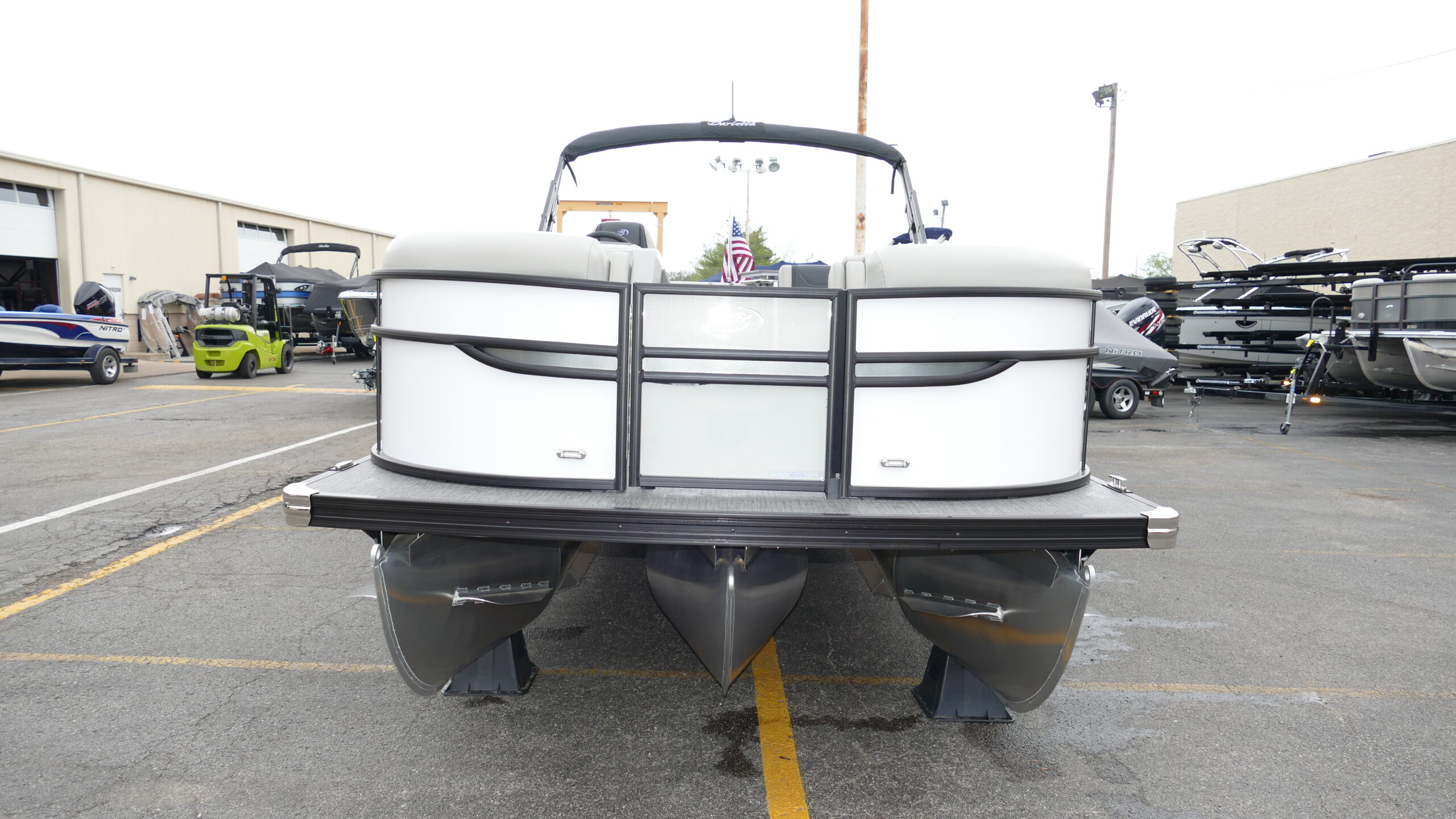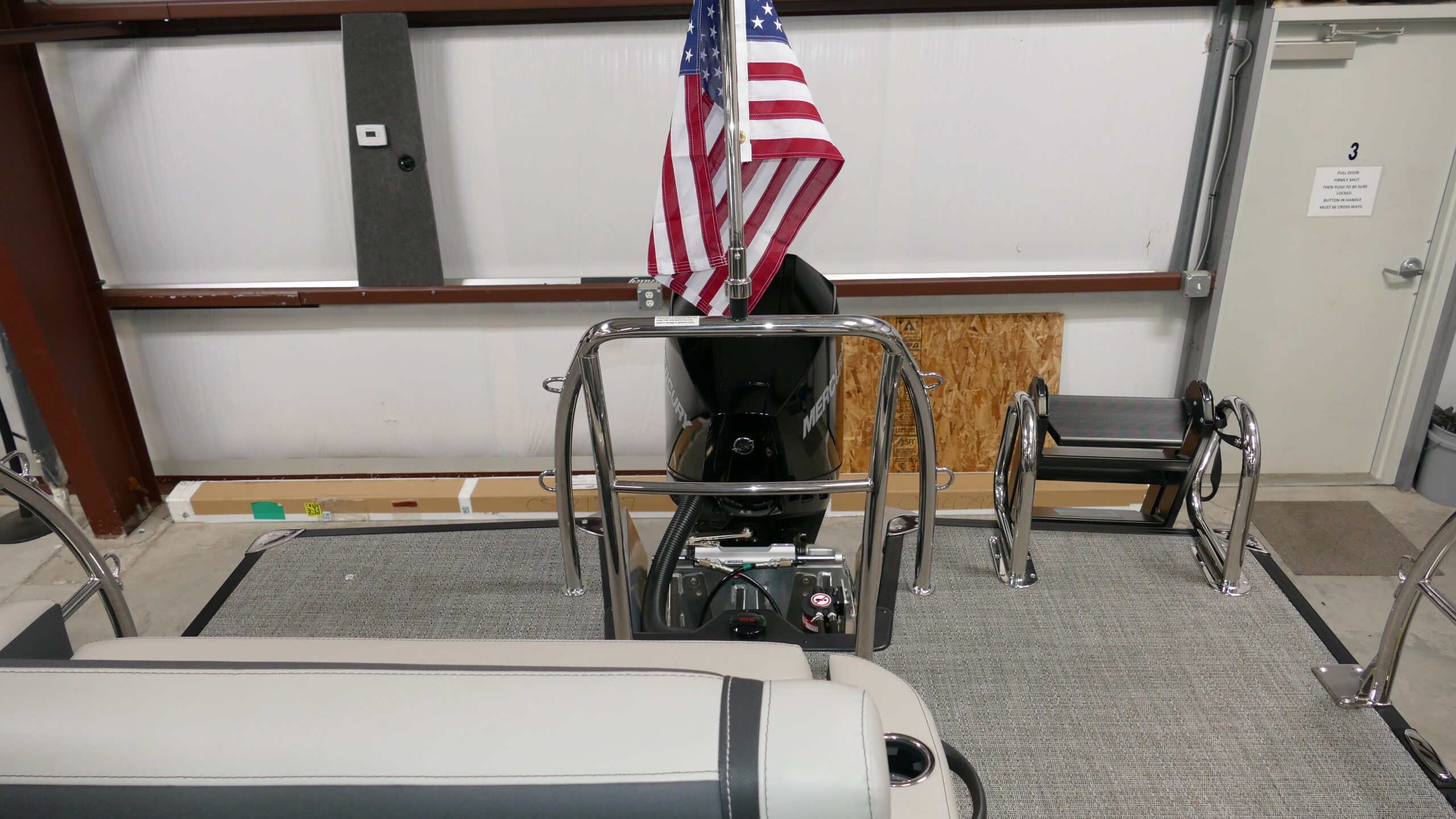 Exterior Colors : Railskin Color – Winter White, Railskin Color Accent- Gray Moonstone, Interior Colors : Marquesan Gray / Onyx Accent, Flooring : Amore Gray Full Length Flooring, Cabrio Tri Toon Package Includes: 25″ Center Tube with 50 Gallon Fuel Tank, Full Lifting Strakes (Inside & Outside), Hydraulic Steering, Ski Tow Bar, Full Belly Skin, In Floor Midship Storage, Mercury 200L. V6 4 Stroke With Power Assist Steering, Cabrio Blackout Package Includes : Black Rails, Black Bimini, Black Rubrail, Black Skirting, Black Shims And Gate Pockets, Black Heavy-Duty Rail Supports, Subwoofer And Amplifier, Cabrio Interior RGB Lighting Package, Stainless Seel Flag Pole With American Flag, On Board Battery Charger, Stainless Steel Propeller, Lifetime + 10 Year Bow To Stern Warranty. Trailer Available For A Additional Cost.
