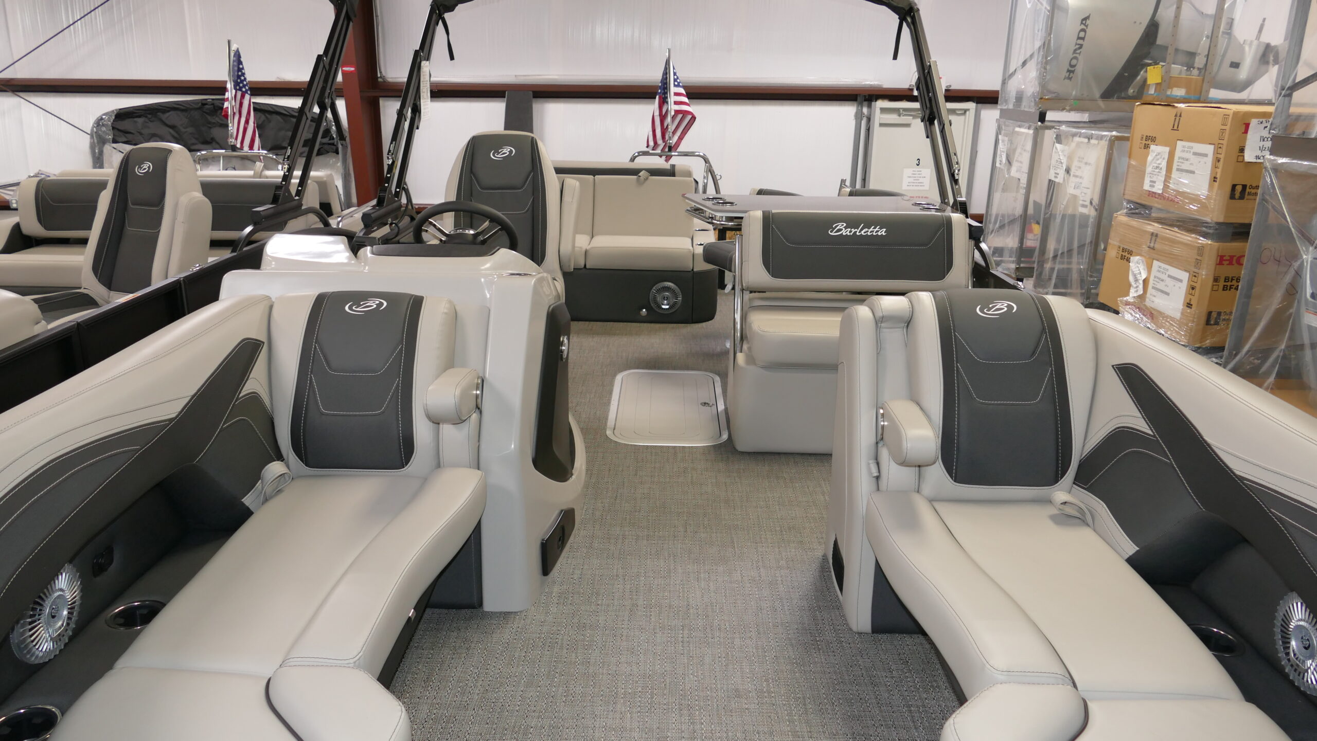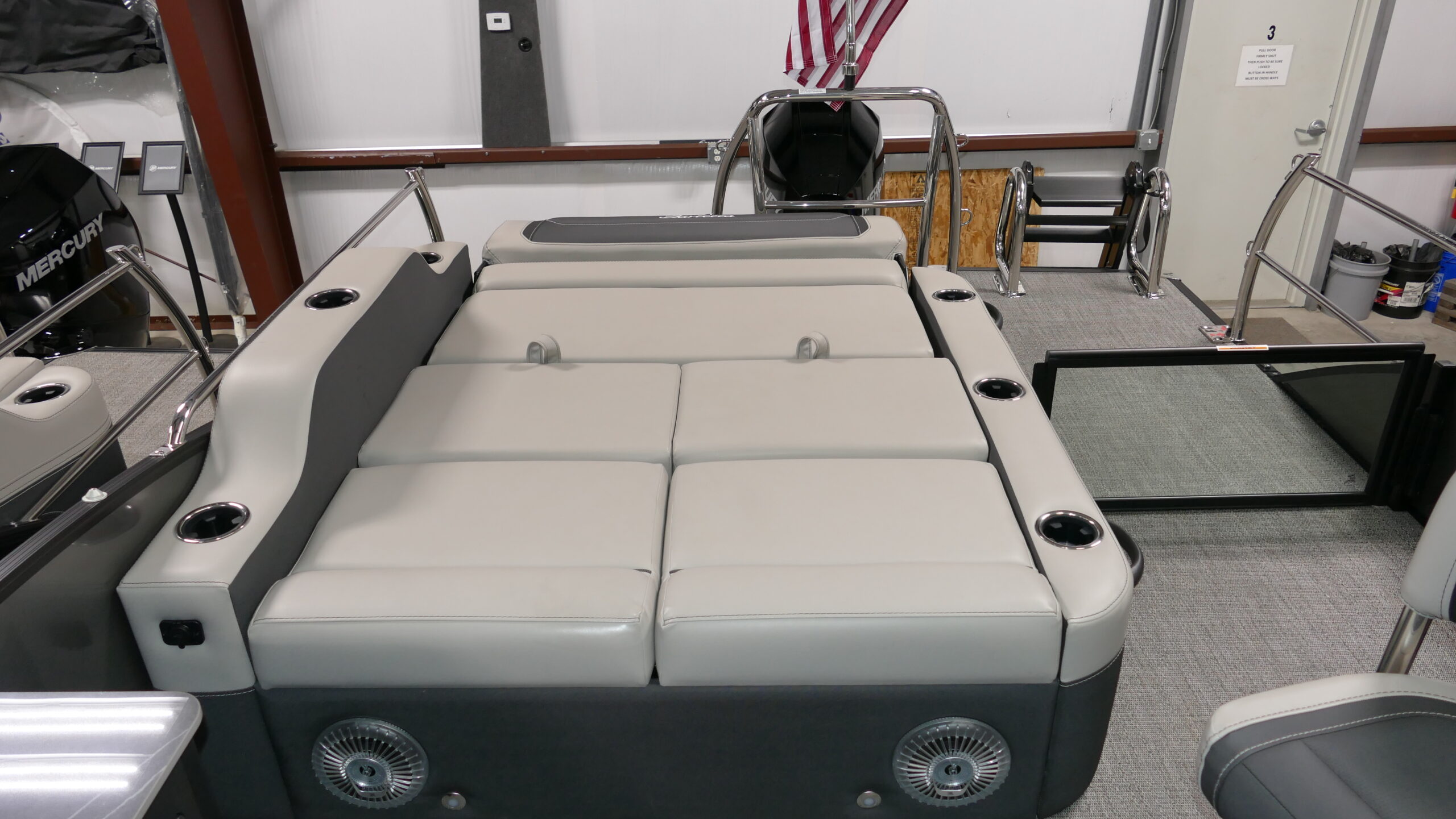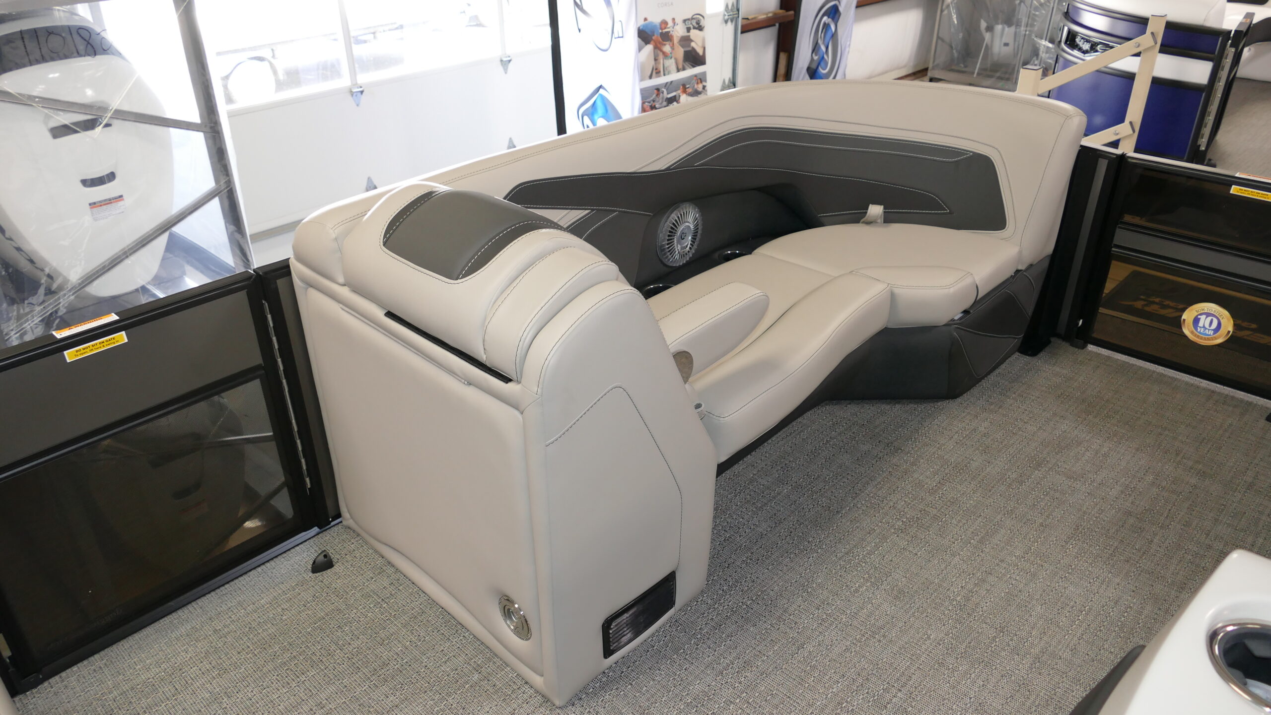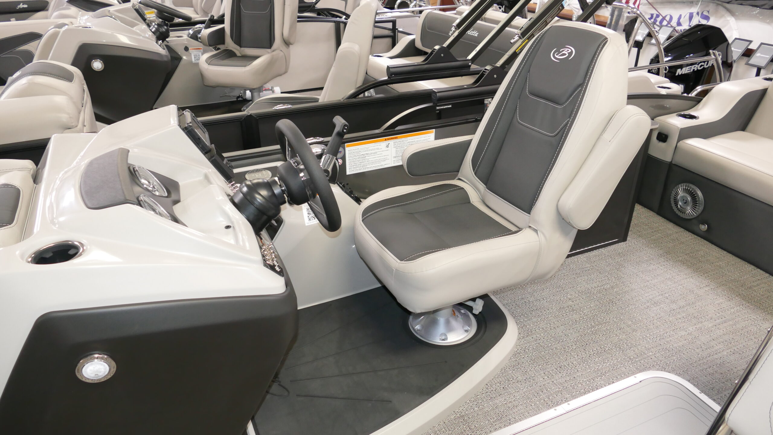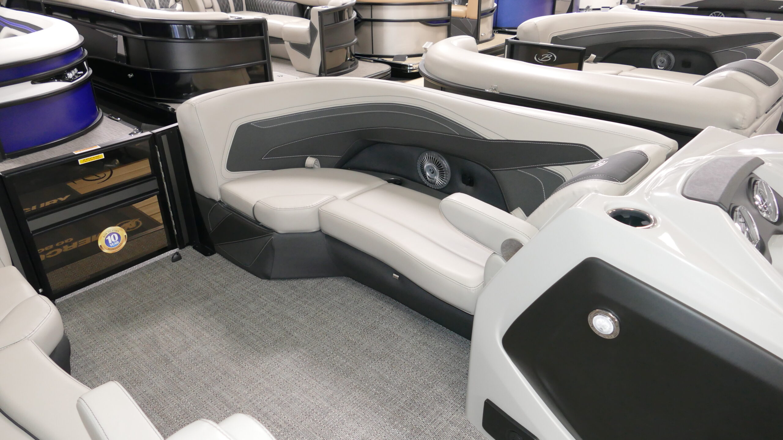 Exterior Colors : Railskin Color – Winter White, Railskin Color Accent- Gray Moonstone, Interior Colors : Marquesan Gray / Onyx Accent, Flooring : Amore Gray Full Length Flooring, Cabrio Tri Toon Package Includes: 25″ Center Tube with 50 Gallon Fuel Tank, Full Lifting Strakes (Inside & Outside), Hydraulic Steering, Ski Tow Bar, Full Belly Skin, In Floor Midship Storage, Mercury 200L. V6 4 Stroke With Power Assist Steering, Cabrio Blackout Package Includes : Black Rails, Black Bimini, Black Rubrail, Black Skirting, Black Shims And Gate Pockets, Black Heavy-Duty Rail Supports, Subwoofer And Amplifier, Cabrio Interior RGB Lighting Package, Stainless Seel Flag Pole With American Flag, On Board Battery Charger, Stainless Steel Propeller, Lifetime + 10 Year Bow To Stern Warranty. Trailer Available For A Additional Cost.