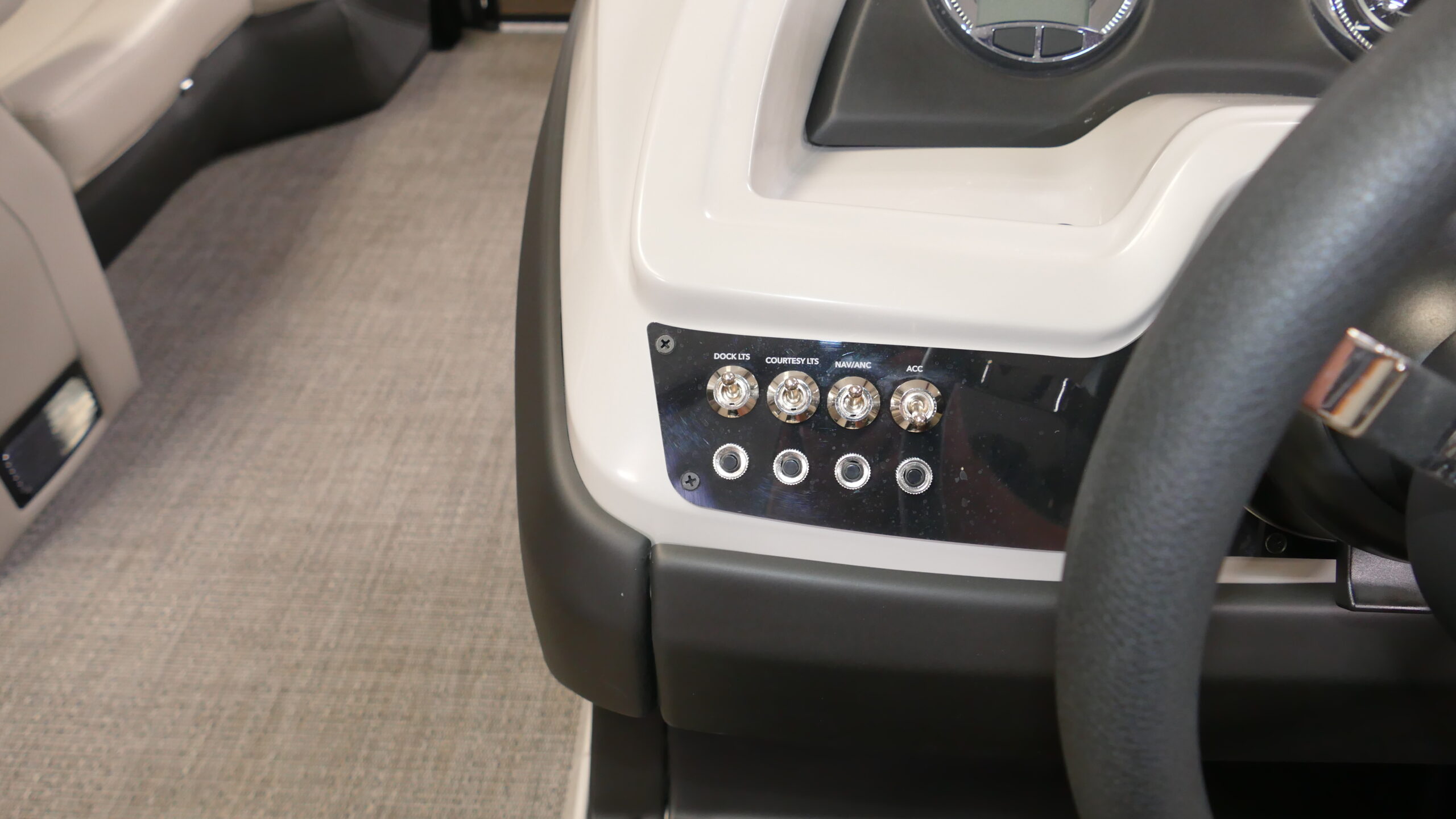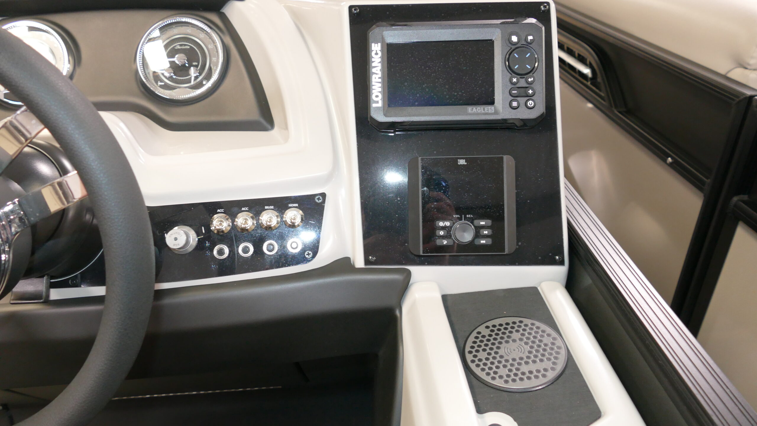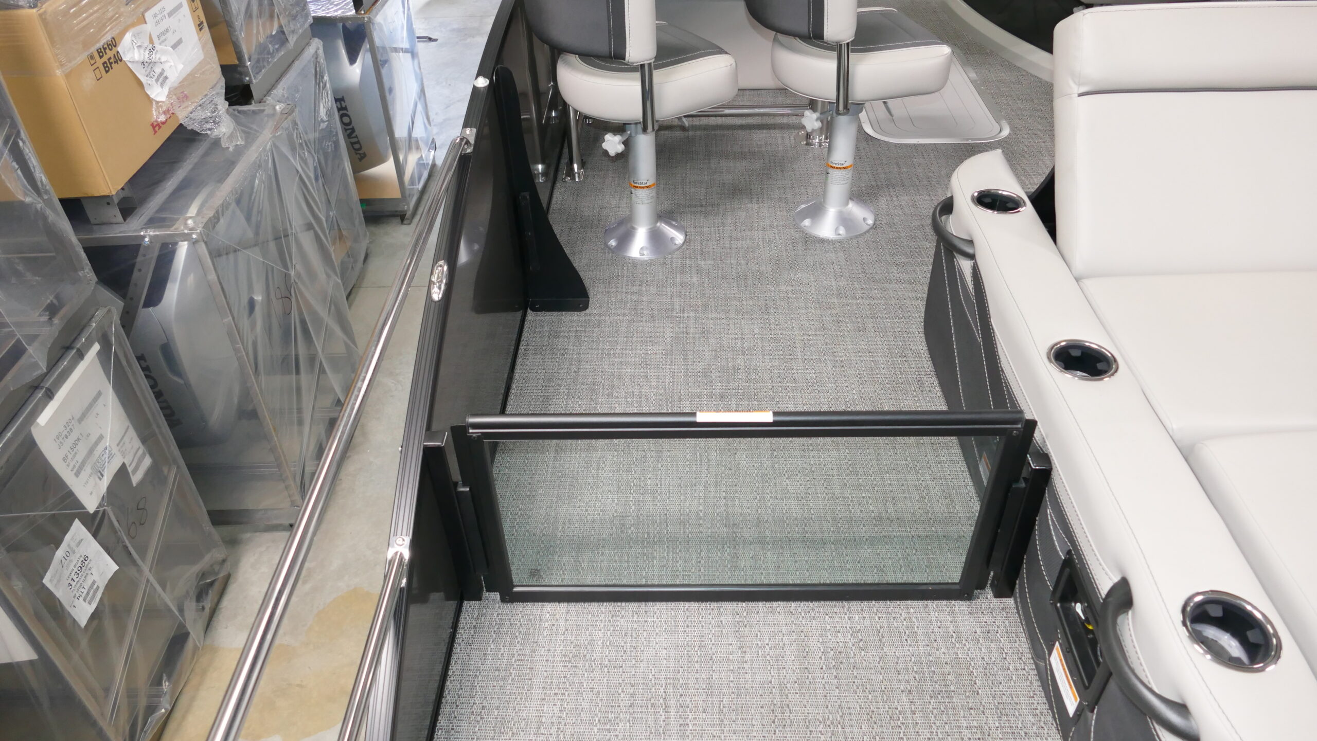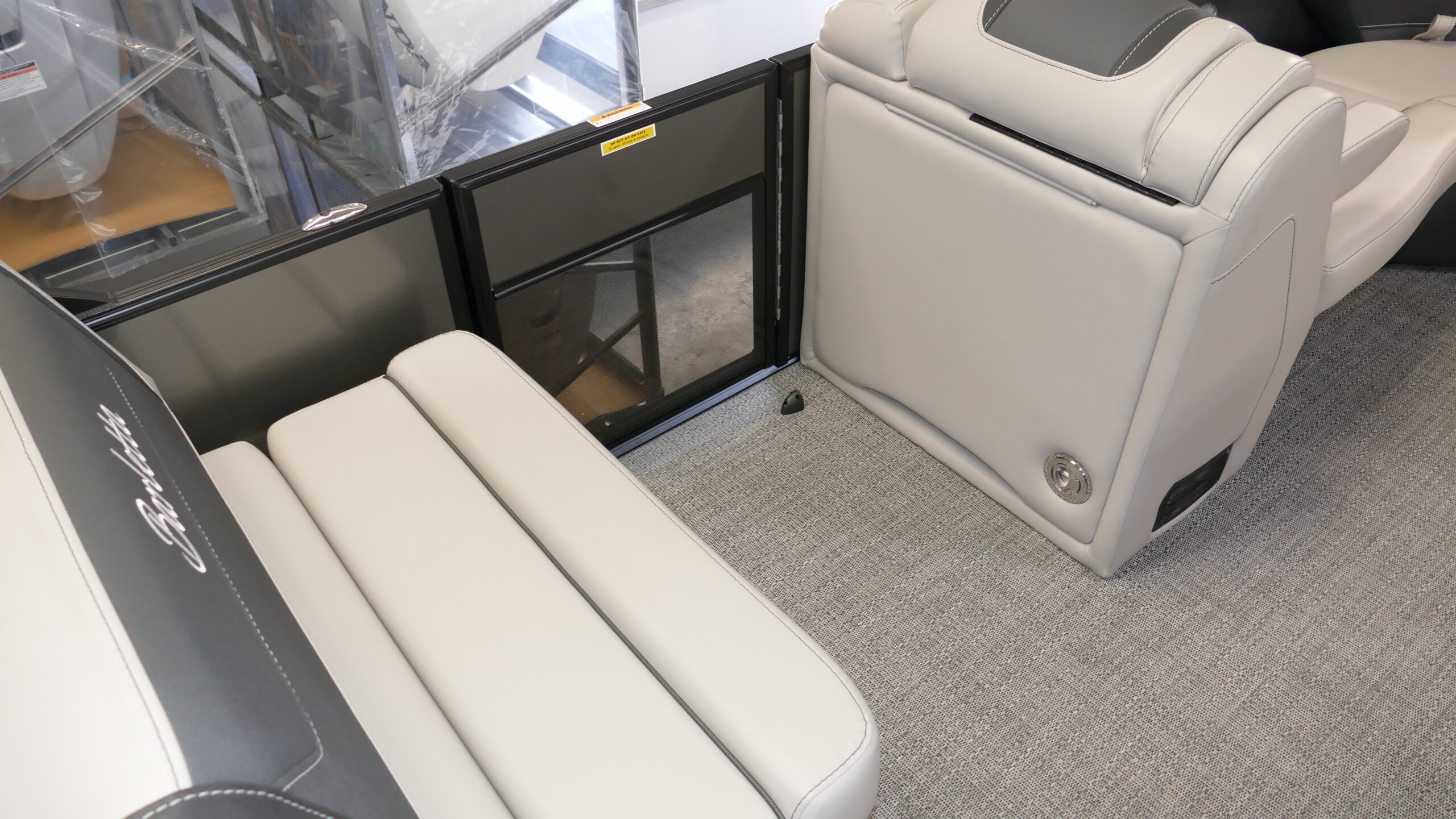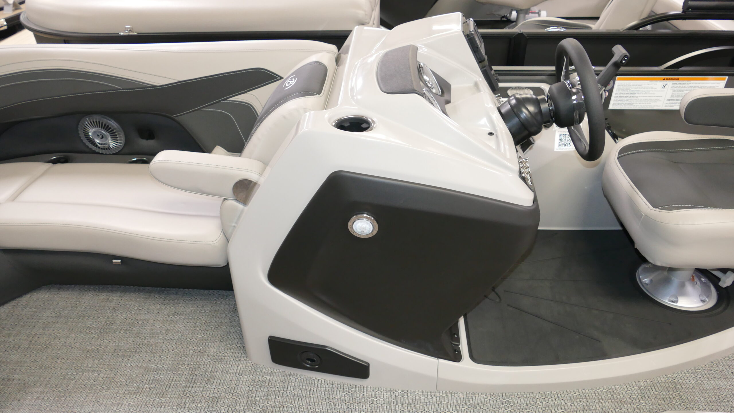 Exterior Colors : Railskin Color – Winter White, Railskin Color Accent- Gray Moonstone, Interior Colors : Marquesan Gray / Onyx Accent, Flooring : Amore Gray Full Length Flooring, Cabrio Tri Toon Package Includes: 25″ Center Tube with 50 Gallon Fuel Tank, Full Lifting Strakes (Inside & Outside), Hydraulic Steering, Ski Tow Bar, Full Belly Skin, In Floor Midship Storage, Mercury 200L. V6 4 Stroke With Power Assist Steering, Cabrio Blackout Package Includes : Black Rails, Black Bimini, Black Rubrail, Black Skirting, Black Shims And Gate Pockets, Black Heavy-Duty Rail Supports, Subwoofer And Amplifier, Cabrio Interior RGB Lighting Package, Stainless Seel Flag Pole With American Flag, On Board Battery Charger, Stainless Steel Propeller, Lifetime + 10 Year Bow To Stern Warranty. Trailer Available For A Additional Cost.