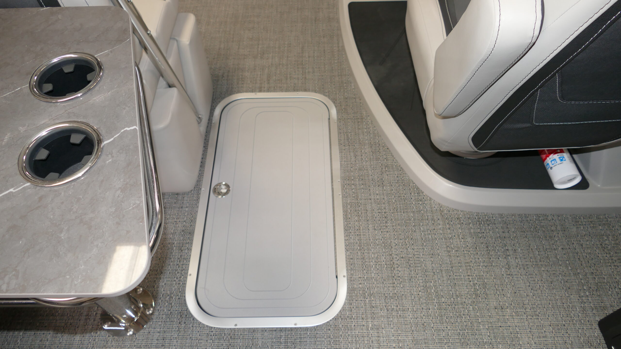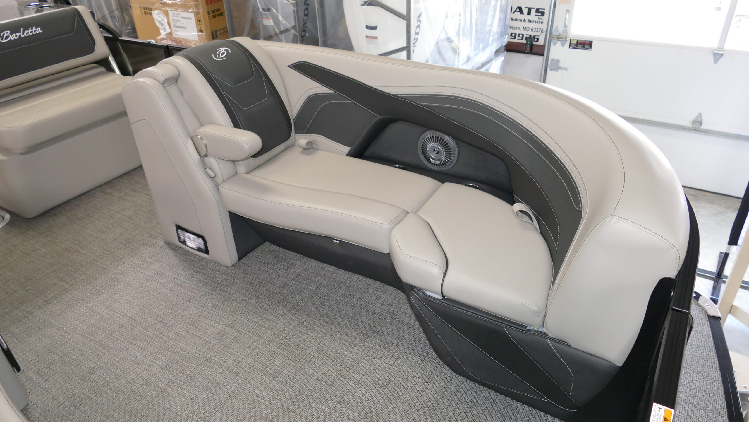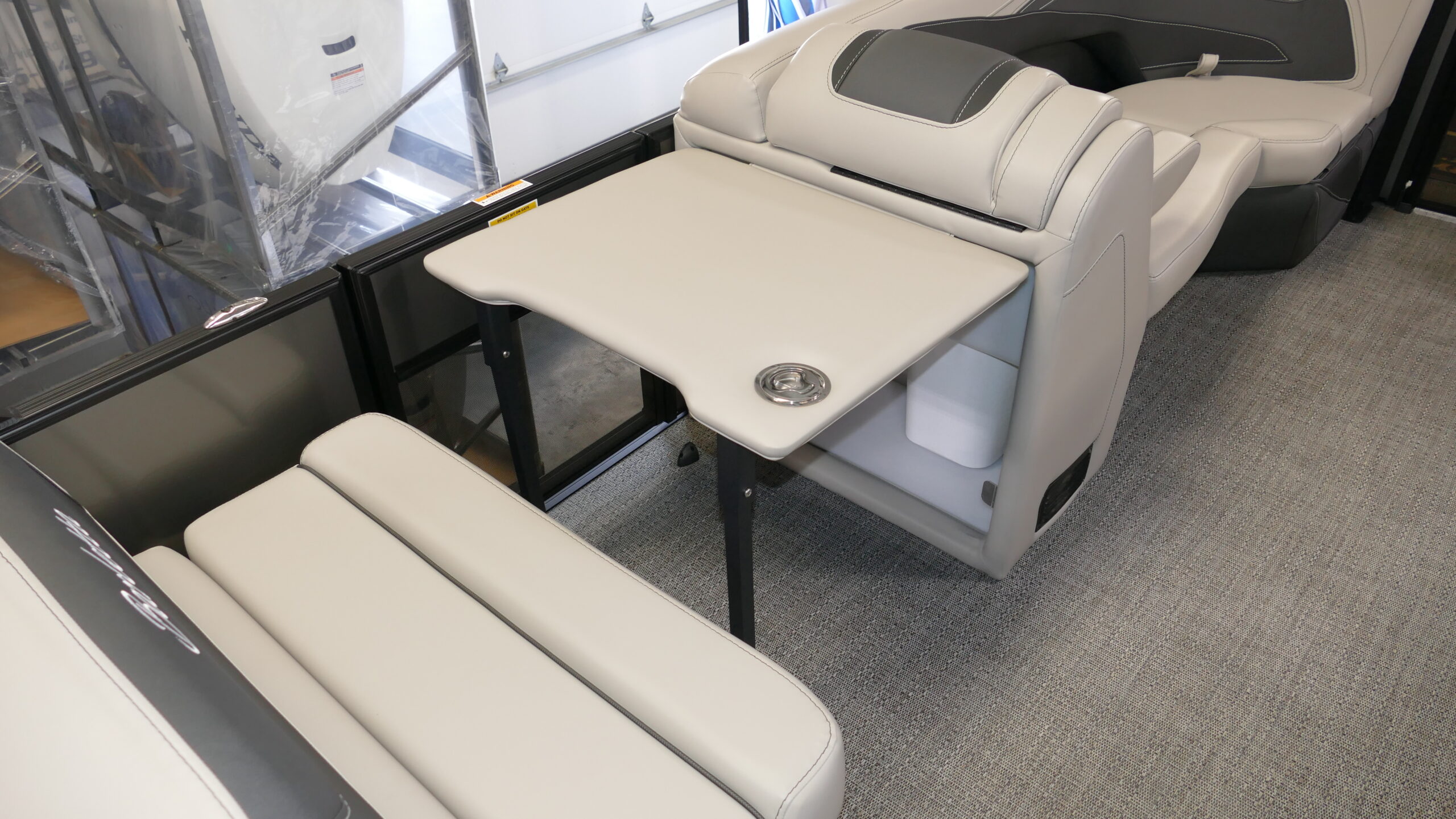 The highlight of the Ultra-Entertainer floorplan is the versatile high-top table accompanied by two upholstered swivel stools with additional multi-function bench seating perfect for hosting family and friends of all ages. Moving to the stern of the boat you will find the one-of-a-kind Ultra-Lounge featuring 5 different seating positions. To round-off this floorplan, you will find the standard chaise-lounge seating in the bow designed for comforting lounging and extra seating.